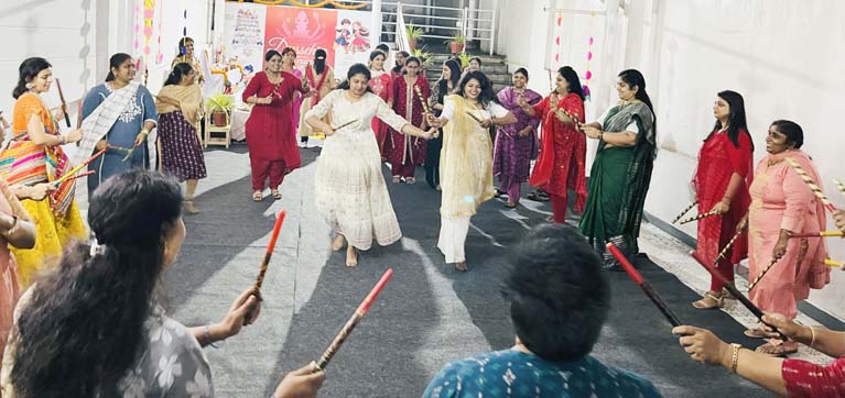 As the day progressed, the rhythmic beats of Dandiya filled the air with joy and excitement. Students, mothers, and teachers joined together in the lively dance, creating a scene of unity, colour, and celebration. The sight of everyone dancing in harmony reflected the spirit of togetherness and cultural pride that Dussehra embodies.