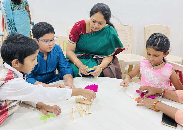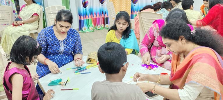 Adding a creative touch to the celebrations, a craft corner was arranged where parents and their little ones collaboratively made charming paper dolls using coloured paper, ice cream sticks, glue, and decorative kundans. This hands-on activity provided a wonderful opportunity for parents and children to bond while engaging in a joyful, artistic experience.